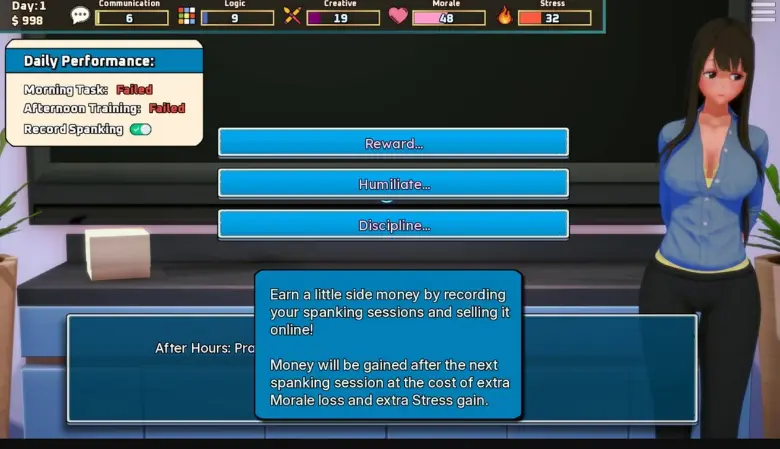 With only 30 days until her final review, you’ll train her, evaluate her, reward her successes,